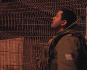 Two soldiers, a man and a woman, approach Tamar. Would you stop filming?