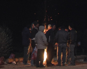 cold, they rub their hands together. The time is some minute past 4 a.m.