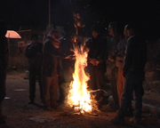 The fire burns large and beautiful. The waiting line is long. And slow.
