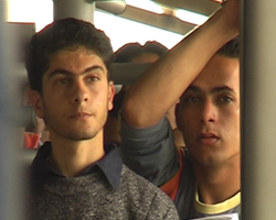 מגיע טרנזיט. עוצר. שוב קימור היד. כמה גברים וילד יוצאים ונעמדים כולם