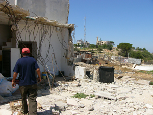 כדי להבין שהחומה לא נבנית לצורכי ביטחון אלא כדי לקבוע את גבולותיה העתידיים של ישראל, צריך רק להביט במפה. קו ברור עובר מזרחה לקו הירוק ומטרתו אחת: להכניס לשטח ישראל כמה שיותר התנחלויות ואדמה ולהוציא ממנה כמה שיותר כפרים פלסטינים עם מינימום אדמה. בינות להתנחלויות גבעת זאב, גבעון ורמות, על תוואי הכביש הראשי ליהודים בלבד, נשאר כפר אחד קטן שהחומה לא הצליחה לקלוף החוצה מהשטח. כתם פלסטיני בתוך רצף יהודי. הכפר נבי סמואל. עיסא היה בן שש עשרה, כמאל בן ארבע עשרה וחאג'ה שוכריה היתה בסוף שנות השלושים שלה, כאשר ב 1967 החלו ההפגזות. הזיכרון של מעשי הטבח שנעשו ב 1948 היה מוחשי וקרוב, ואנשים פחדו ממה יקרה כשהיהודים יבואו. המון ברחו לירדן. אֵחַיו של עיסא ושל כמאל והרבה מהישוב הקטן. ההפגזות מצד לצד התנהלו מעל ראשיהם. עיסא ואמו ואחיו ועוד כמה מהמשפחה המורחבת התחבאו במערה ליד ביר נבאלה (بئرنبالا). כשחזרו אחרי עשרה ימים בערך לבתיהם, ראו שהחיילים בזזו את הבתים. כַּדי דבש נעלמו ומזרונים וצלחות. הכל נגנב. הבתים היו ריקים מרכוש. אבל כמה כבר היה, הם אומרים. והבתים, מלבד נזקים קלים, עמדו על תילם. והם המשיכו בחייהם. עיסא ואימו, וכמאל ואימו עם אחיו ואביו החורג (הוא אחיו האילם של עיסא), וחאג'ה שוכריה והוריה (שאיתם חיה אחרי מות בן זוגה וחתונת בנותיה), כולם חזרו פחות או יותר לחיים שחיו קודם. הבתים של הכפר היו פזורים ברובם ליד מתחם המסגד הישן. זה היה כפר קטן גם אז. בנוי ליד חורבות הבתים הקדומים של הכפר שנחרבו באלף תשע מאות שבע עשרה, במלחמה בין הטורקים לאנגלים, שעומדים חרבים עד היום. 162תושבים בסך הכל נרשמו לפני המלחמה. ב 23 במרץ 1971 בחמש, או שש בבוקר, הגיעו כוחות הצבא ואיתם משאיות וטרקטורים כדי להרוס את הכפר נבי סמואל. יש לכם שעה לפנות אמרו להם. הם לקחו מה שאפשר היה להספיק לאסוף ואי אפשר היה הרבה, והצבא החל להרוס להם את הבתים עם חפציהם בתוכם, עד היסוד. כלבה השחור של חאג'ה שוכריה לא הסכים לצאת. ניסו לגרור אותו החוצה, וקראו לו, והוא סרב לצאת ונקבר תחת ההריסות. למה אתם הורסים לנו את הבית, אמר כמאל הילד והיכו אותו. לכו לבתים ההם, צעקו עליהם החיילים וגירשו אותם לקבוצת בתים מרוחקת יותר, בשולי הכפר, ששייכים לאנשים שברחו לירדן במלחמה ועמדו ריקים. והם הלכו לשם. לאימו של עיסא ומשפחתה הוקצה חדר. ולאימו של כמאל ומשפחתה חדר. חדר ליד חדר. את הכפר הרסו לגמרי. השטיחו את הקרקע, וכינו את כל השטח 'פארק'. מותר לכם לבנות שירותים מפח אמרו להם, והם בנו. ומאז לא מרשים להם לבנות. מי שבונה הורסים לו. אין אישורים, כי לא נותנים רשיונות, ואנשים נאלצים לבנות ללא אישורי בנייה כי אי אפשר שלא, כי זו אדמתם, כי יש ילדים. והילדים רוצים גם הם לקיים את משפחותיהם. כי הם מבקשים רשיון ולא מקבלים, פעם אחר פעם כשיטה. ואז כוחות הכיבוש השונים הורסים את הבניה 'הלא חוקית' 'כחוק'. מלבד למוכתר. המוכתר הוא משתף הפעולה. השלטונות הקולוניאליים המתחלפים מינו מישהו מקרב התושבים שיהיה עושה דברם, וכינו אותו 'המוכתר'. לו יש זכויות יתר, ובתמורה משרת את מטרות השלטון כנגד התושבים. כך למשל המוכתר של היום ומשפחתו הם היחידים בכפר שיש להם תעודה כחולה ירושלמית (לשאר בני הכפר תעודה פלסטינית) ויכולים בגלל זה להיכנס לעבוד בישראל וחופשיים לנוע כרצונם. כך הוא יכול, שלא כתושבי הכפר האחרים, לבנות, ולא הורסים את ביתו. וזאת כשהבית שעמד באותו המקום קודם, נהרס על ידי השלטונות 'כחוק'. בנבי סמואל תפקידו העיקרי של המוכתר הוא לעזור במעשה ההשתלטות על האדמות והטרנספר השקט. הוא מזייף חתימות של מתים שכמו מכרו אדמתם לפני מותם או אחרי מותם, ומסדר עדי שקר, ותצלומים כמו תצלום של צ'ק בלי האדם המחזיק אותו, כהוכחה לכך שהתבצעה מכירה. ומפני שכוחות 'החוק' של ישראל לא מעונינים להפסיק את מעשה המירמה, עדי השקר מתקבלים ללא פיקפוק גם כשברור שמשהו אינו כשורה, והתלונות של התושבים נגד הזיופים נקרעות ונקברות, ושטח אדמה אחד אחרי השני נמכרים במירמה